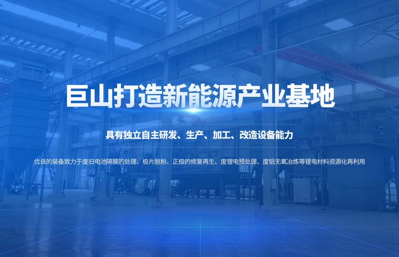 河南巨山新能源科技有限公司,成立于2018年。位于河南省滑縣先進制造業開發區人民路長虹大道交叉口智能園,是一家集廢舊鋰電材料回收加工、銷售于一體的綜合性實體企業。  現公司依托河南巨峰環保科技有限公司先進的工藝、精湛的技術和優良的裝備致力于廢舊電池隔膜的處理、極片脫粉、正極的修復再生、廢鋰電預處理、廢鋁無氧冶煉等鋰電材料資源化再利用;現有鋰電回收方面專 利技術約30項。  于2023年12月已啟動項目:“年5萬噸隔膜處理”“年3萬噸極片脫粉”“年5萬噸正極修復再生”“年3萬噸廢鋰電池預處理”“年5萬噸廢鋁冶煉”等。目前一期投資額為3.5億人民幣,占地面積為21192平方米;總建筑面積為22550平方米;計容建筑為42385平方米。主要建設內容為廢舊鋰電池、極?回收處理,廢電池鋁?氧冶煉,正極修復再?,隔膜回收處理;汽車電動化是實現“碳達峰、碳中和”的重要國家戰略,隨著新能源汽車產業發展規劃,項目前景廣闊,發展空間大。  本公司具有獨立自主研發、生產、加工、改造設備能力,擁有數百項國家發明和新型實用專 利技術,并成為國家十三五重大科技專項領 導者。本項目現已得到市、縣、區各級領導的支持,獲得經營類、稅收類、購置類等多項優惠政策。